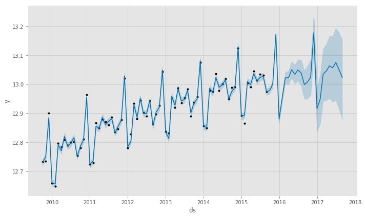 Aufgabe (Level 3, für Zeitreihen-Enthusiasten): Das geht besser, oder? Schauen Sie sich auf der Website um, fragen Sie Google und ChatGPT oder lesen Sie die Doku und modifizieren Sie den Code, um das Modell zu verbessern, z.B. indem Sie Feiertage in die Analyse mit aufnehmen oder die Information über Wochentage inkludieren. Vielleicht gibt es ja auch noch andere Paramter - wie sehr können Sie den Forecast in Ihrer anfangs genutzten Metrik verbessern?